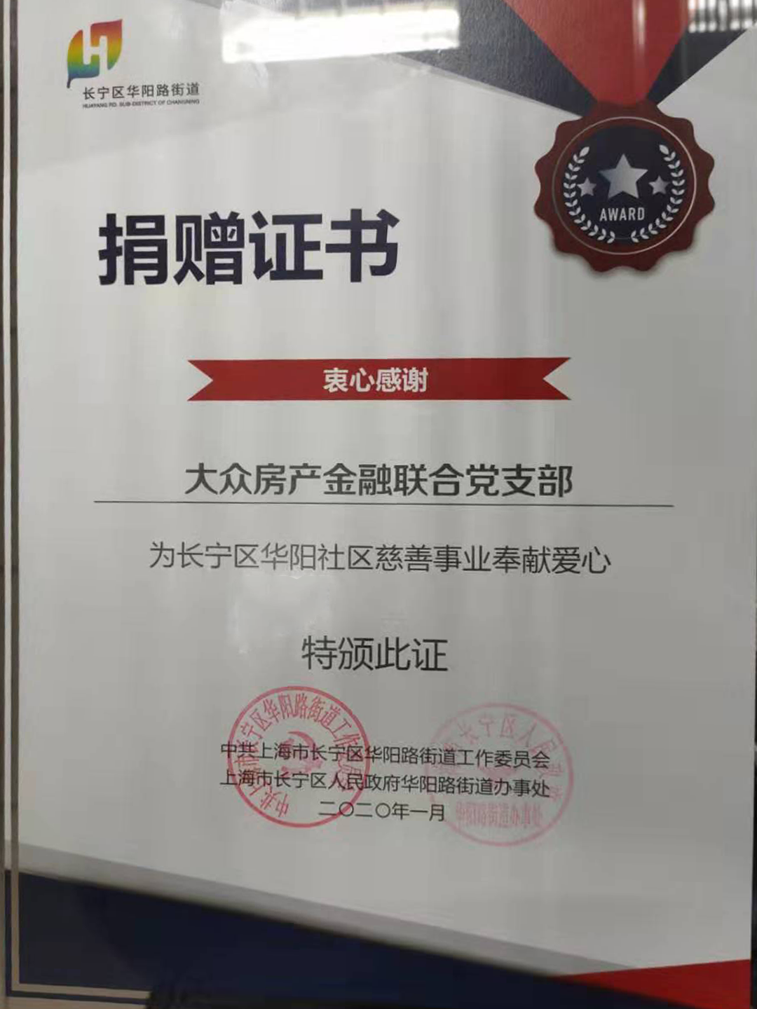 活动伊始,华阳路街道党工委副书记、办事处主任林子岳致辞,向一直以来参与华阳社区慈善捐赠活动的社区单位和爱心人士表示感谢。并向包括德扑之星房产金融联合党支部在内的33家社区单位代表及个人颁发爱心捐赠证书,感谢他们在2019年度为社区慈善事业做出的贡献。